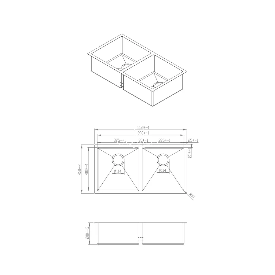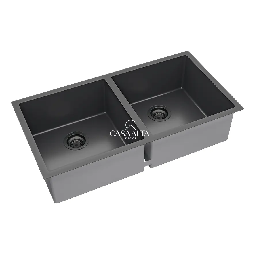 O modelo conta com duas cubas, oferecendo mais organização e eficiência no uso diário. Produzida em aço inox 304, com espessura de 1,0 mm, garante resistência, durabilidade e acabamento premium.