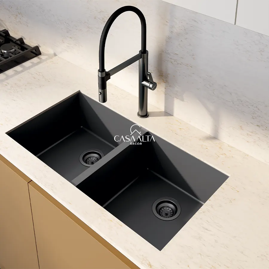 - Modelo com duas cubas, oferecendo mais organização e eficiência no uso diário;