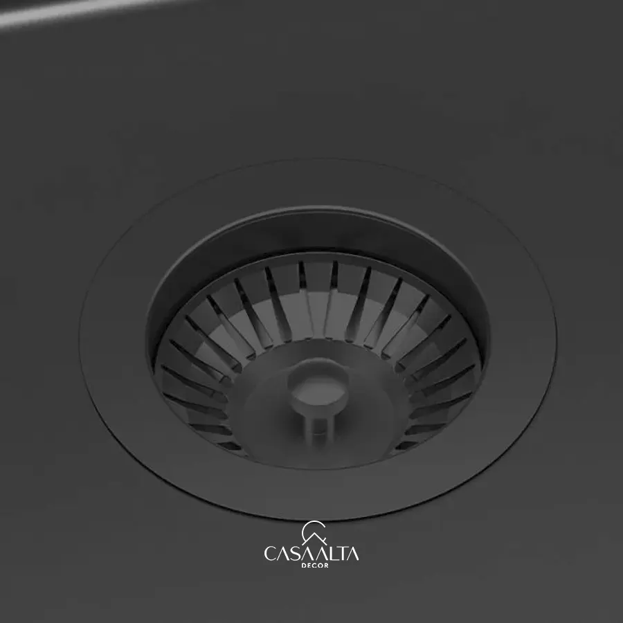 Produzida em aço inox 304, com espessura de 1,2 mm, apresenta cantos delicadamente arredondados (raio de 10 mm), que facilitam a higienização e elevam o conforto no uso diário. O acabamento PVD Grey confere alta resistência, durabilidade e um visual contemporâneo de alto padrão.